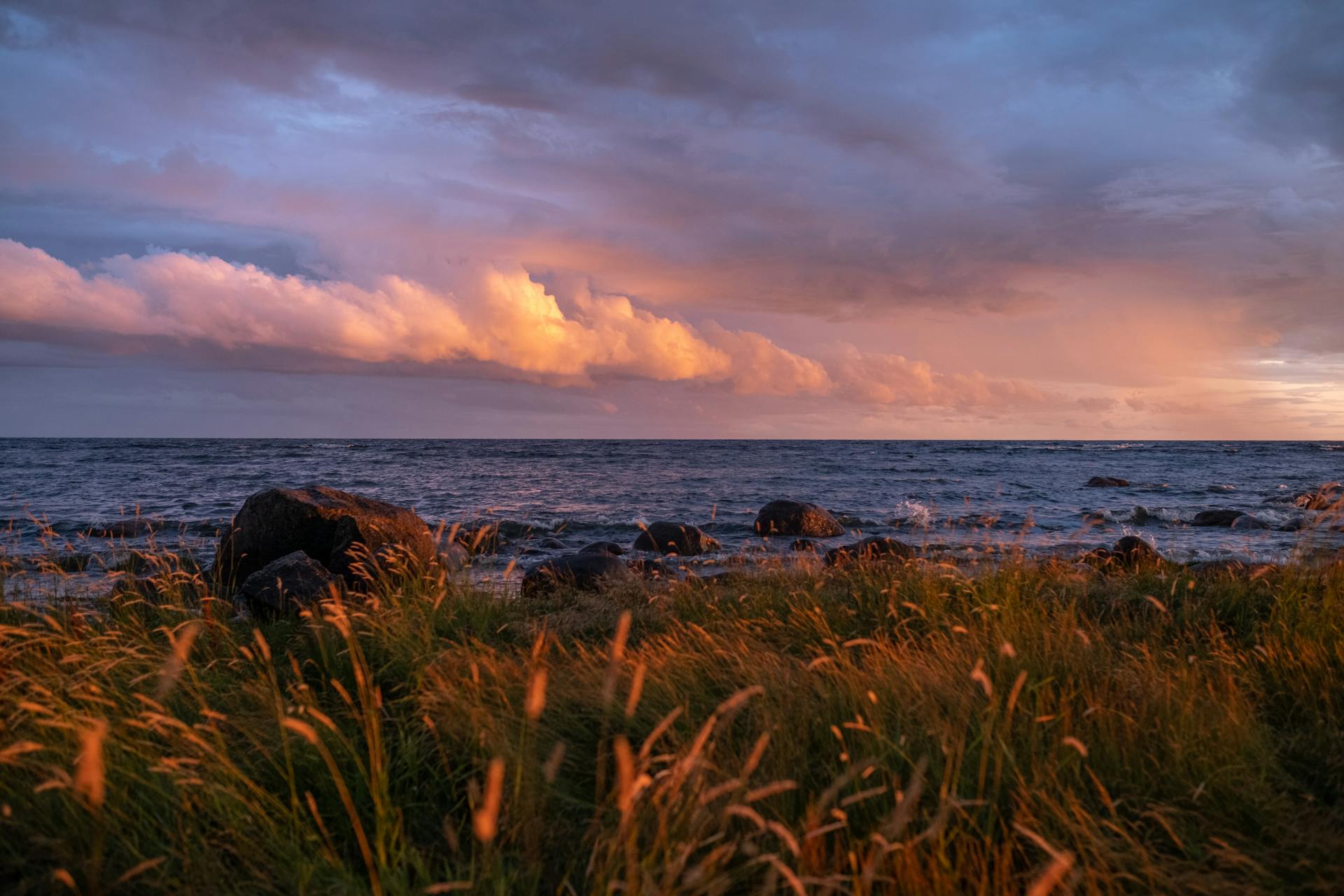 A warm, color-rich capture of coastal light, open fields, and ocean texture — blending softness with natural movement.
